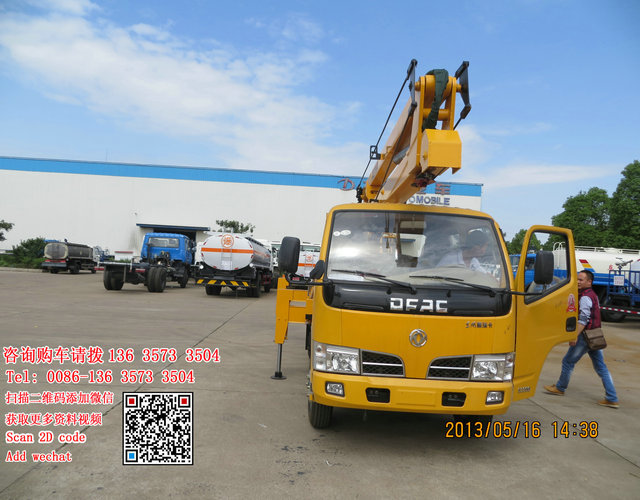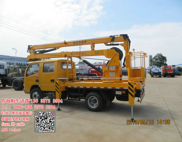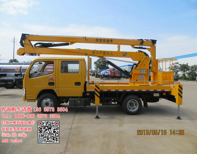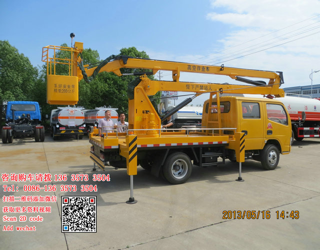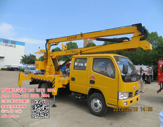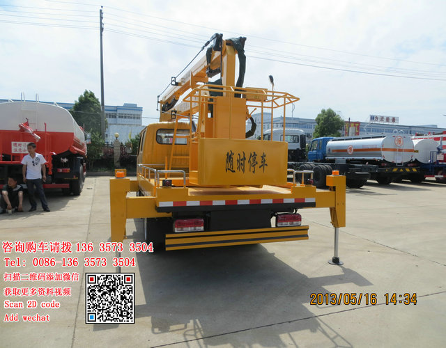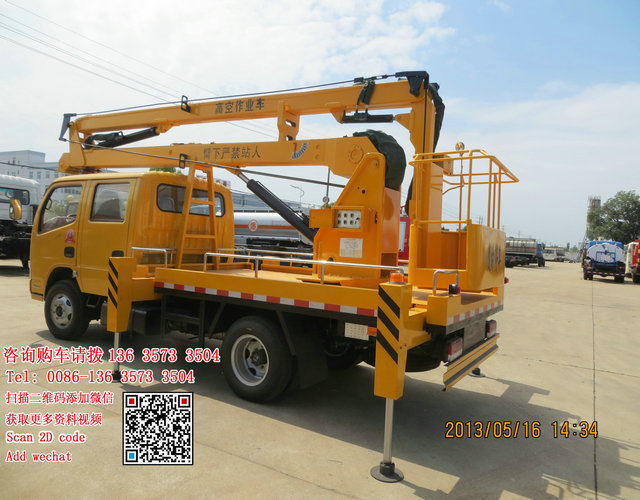 整车12米三节臂,带1T吊钩,四个液压支腿,360度全回转,吊篮承载200KG,上中下操作方式。